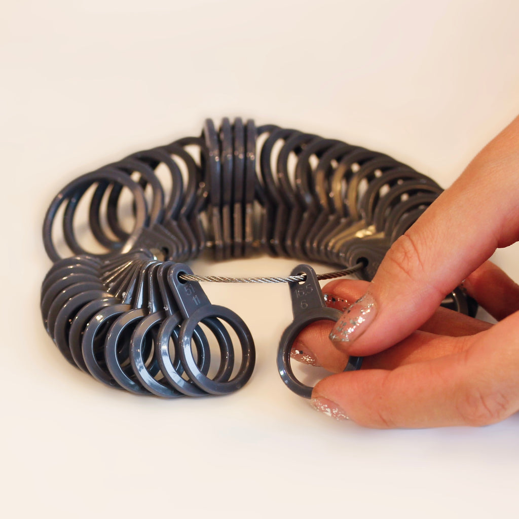 Measuring your ring finger with this tool will help us both to reduce the time and expense of potentially exchanging your ring for sizing reasons.