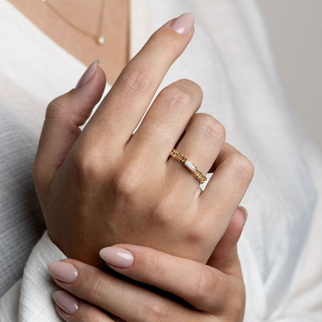 Lab grown diamonds have the same physical, chemical, and optical properties as mined ones, with much less environmental impact. Recycled gold allows us to reduce environmental impact by reusing existing resources instead of extracting new ones. Every ring is a step toward a more sustainable future.