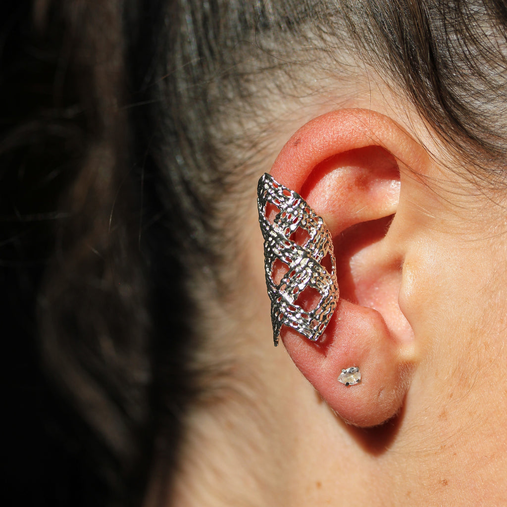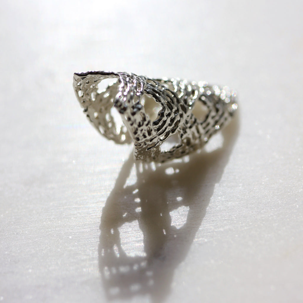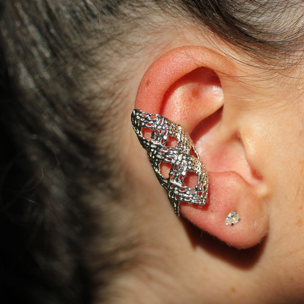 It glides up fingers, swings in ears and needs space on the neck and hand. It is on the large side but at the same time possesses strength and lightness, not unlike armour from the past, which also had the role of protection.