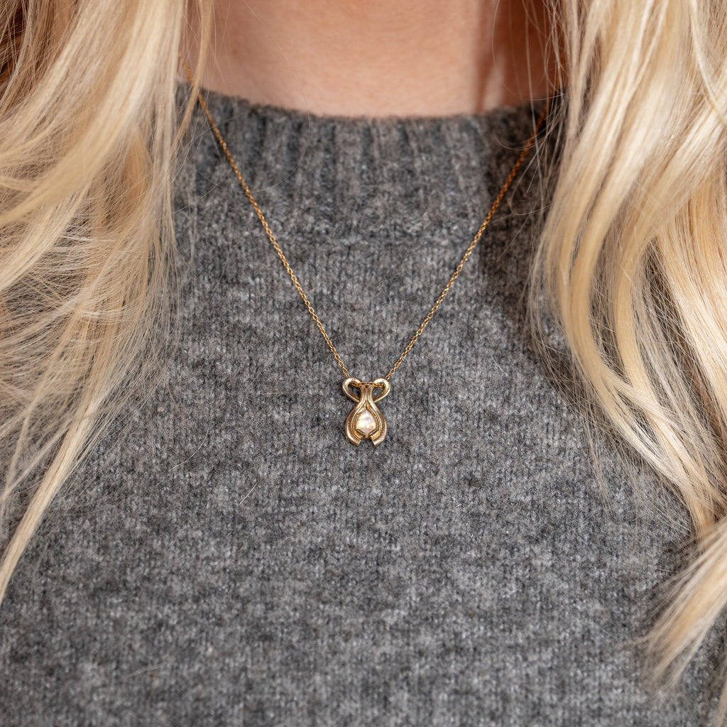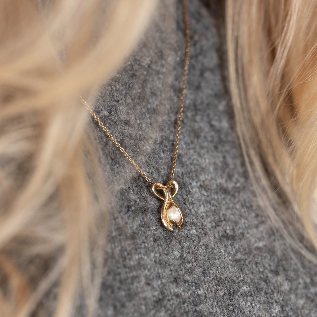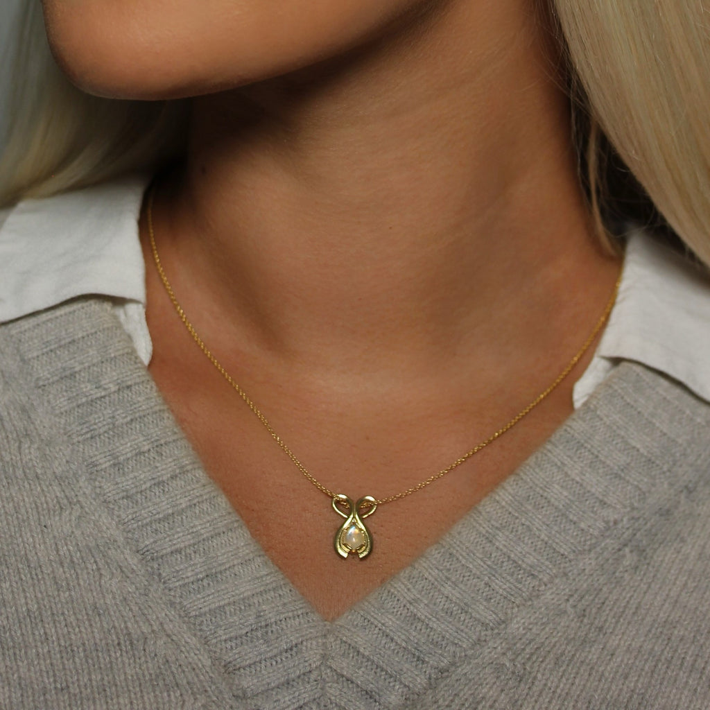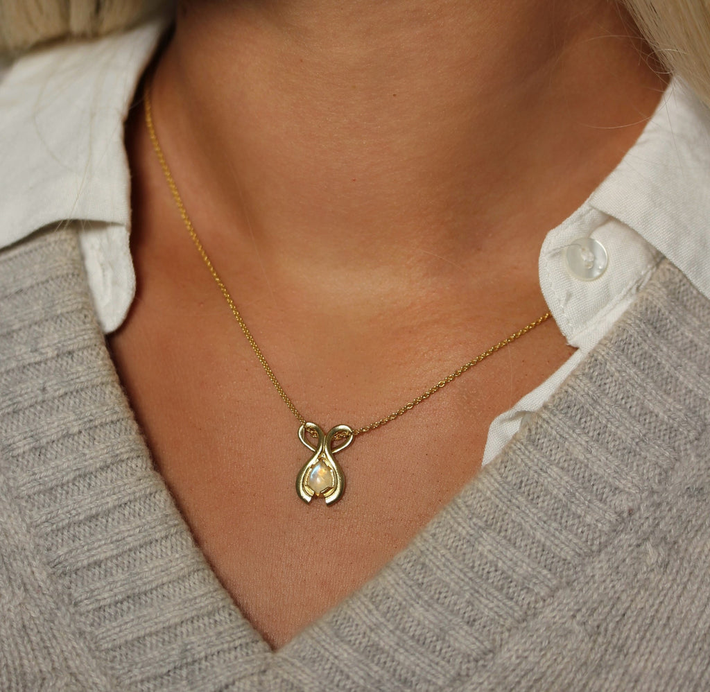 This necklace is inspired by the selfless work of the Hringskvenna women, designed to reflect the love and care they provide through their efforts. The pendant features a heart shape with two arms embracing a Rainbow Moonstone. The heart symbolizes love, kindness, and compassion, while the stone represents the children.