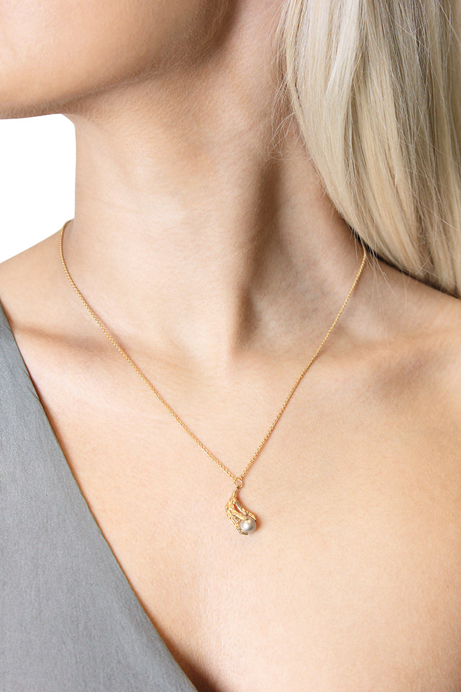 Material: 18k gold plated 925 silver. 6 mm. pearl.