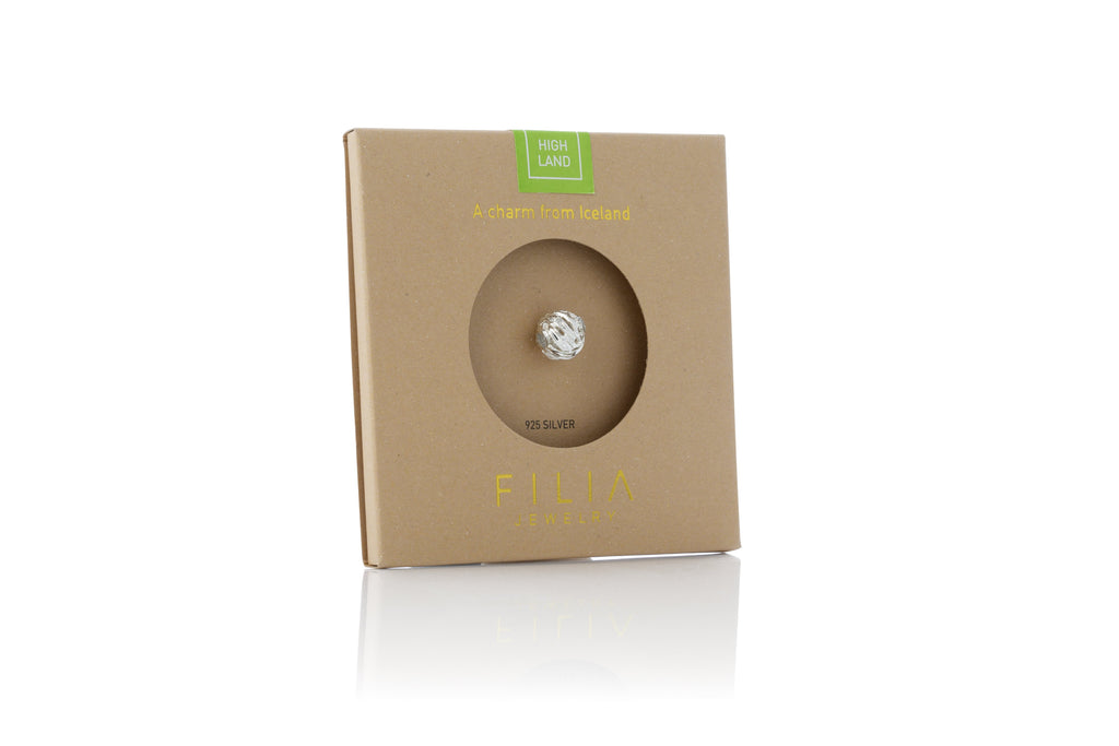 In the gold-plated silver Highland charm you will sense the black sand and deserted wilderness of the highlands, the volcano’s turbulent energy, delicate flowers, lava and moss weave together and fragile elements merge with a vigorous yet hidden force.