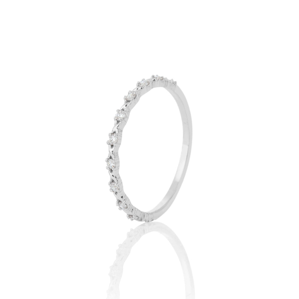 Material: 14K white gold. 9 x 0.03 ct. lab-grown diamonds. VS F+
