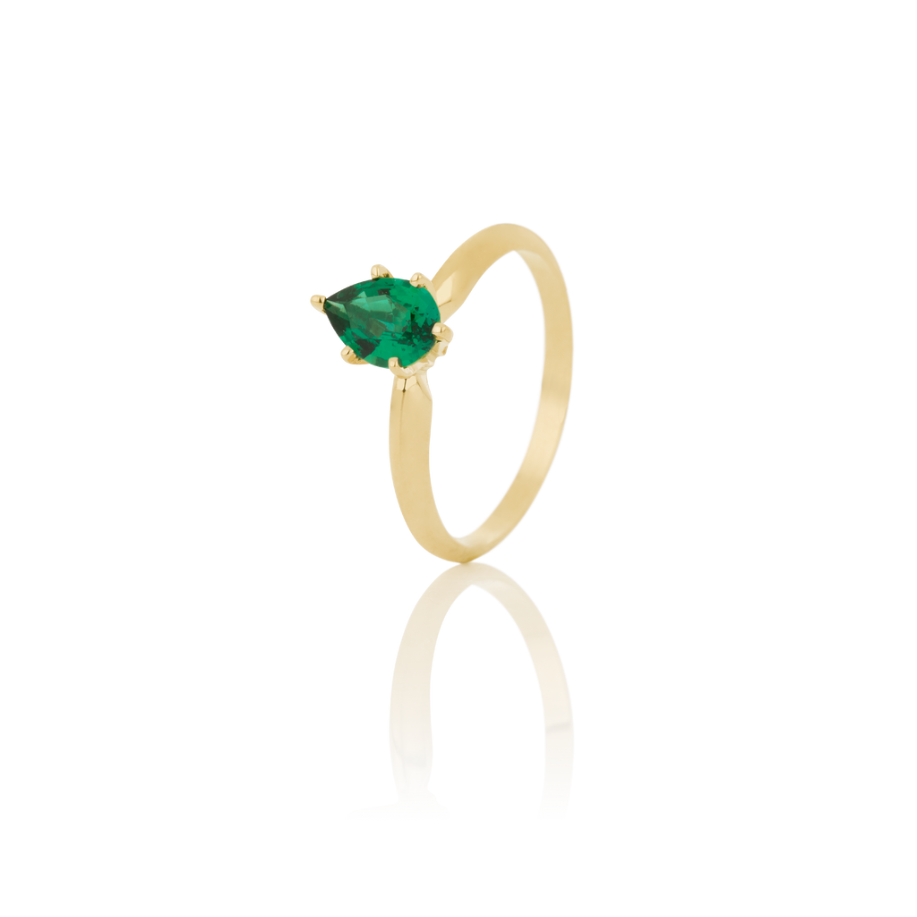 Material: 14K gold. Pear shape lab grown emerald (7×5 mm)